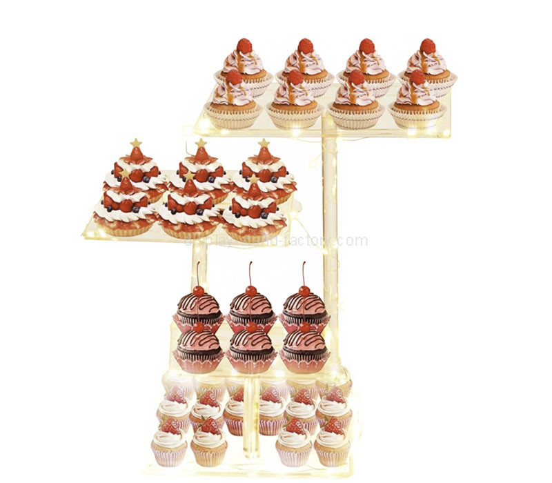 カスタムアクリル4段デザートLEDディスプレイタワーは、プレミアムな視覚効果のための内蔵LED照明でケーキやペストリーを提示します。丈夫なアクリル製で、安定した層状の棚とカスタマイズ可能なサイズ、色、ロゴが特徴で、ベーカリー、カフェ、イベントのディスプレイに最適です。.