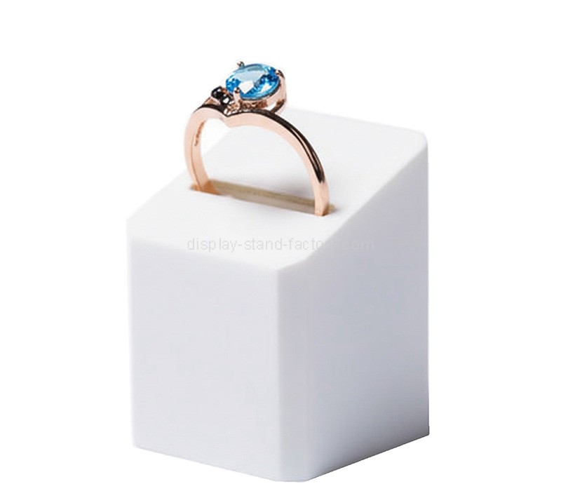 Custom white acrylic cube ring display stand with a clean, minimalist design that highlights the beauty of fine rings. Made from premium acrylic with smooth edges and a stable base, it’s ideal for jewelry stores, boutiques, showcases, and trade shows, offering an elegant and professional presentation.