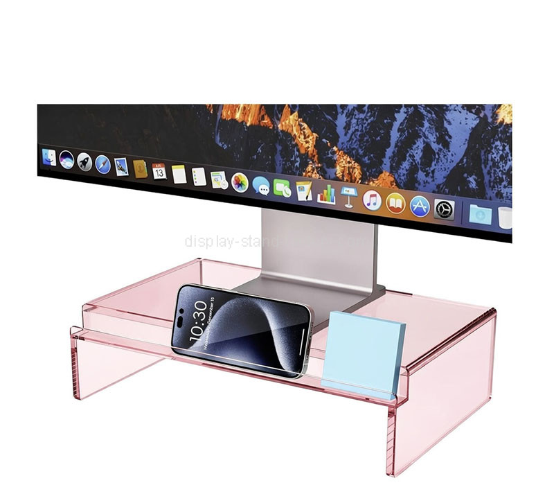 Transform your desk with this custom translucent pink acrylic monitor riser, radiating a soft, dreamy rose glow. Crafted from high-quality, light-diffusing acrylic, it lifts your monitor to ergonomic height for improved posture and neck comfort while creating open storage space below. The integrated slot neatly holds a desk accessories organizer, keeping pens, notes, cables, or small items tidy and within reach. Perfect for feminine, aesthetic workspaces, content creators, or anyone adding a playful yet sophisticated pop of color to their setup.