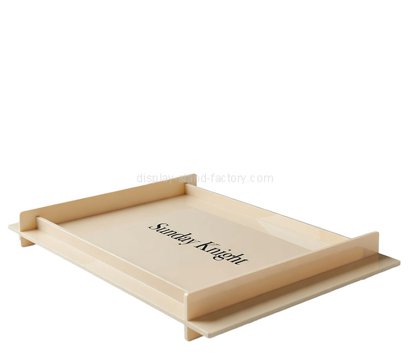 Custom beige acrylic bathroom hotel supplies serving tray designed for elegant organization and display. Crafted from durable, high-quality acrylic with a smooth finish, it is easy to clean and long-lasting. Ideal for holding toiletries, towels, or amenities in hotels and resorts. Colors, sizes, and shapes can be fully customized to suit your brand. Wholesale only.