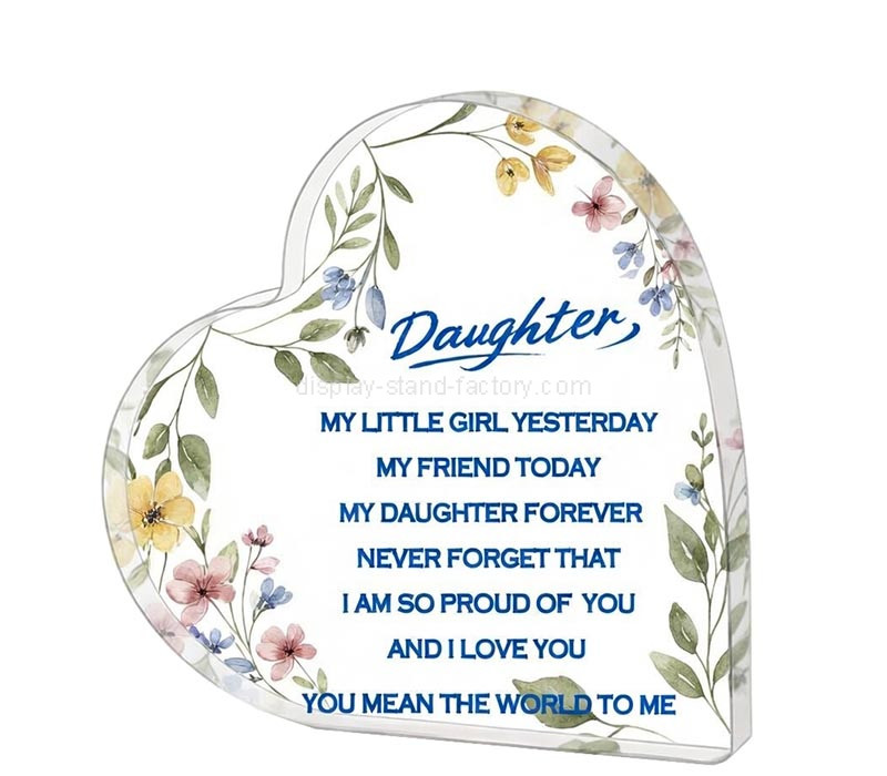 Custom heart shape acrylic “Best Daughter” keepsake sign gift features a clear, elegant design perfect for meaningful displays. Smooth edges and durable material ensure long-lasting quality. Color, size, text, and shape can be fully customized. Ideal for bulk orders, wholesale only.