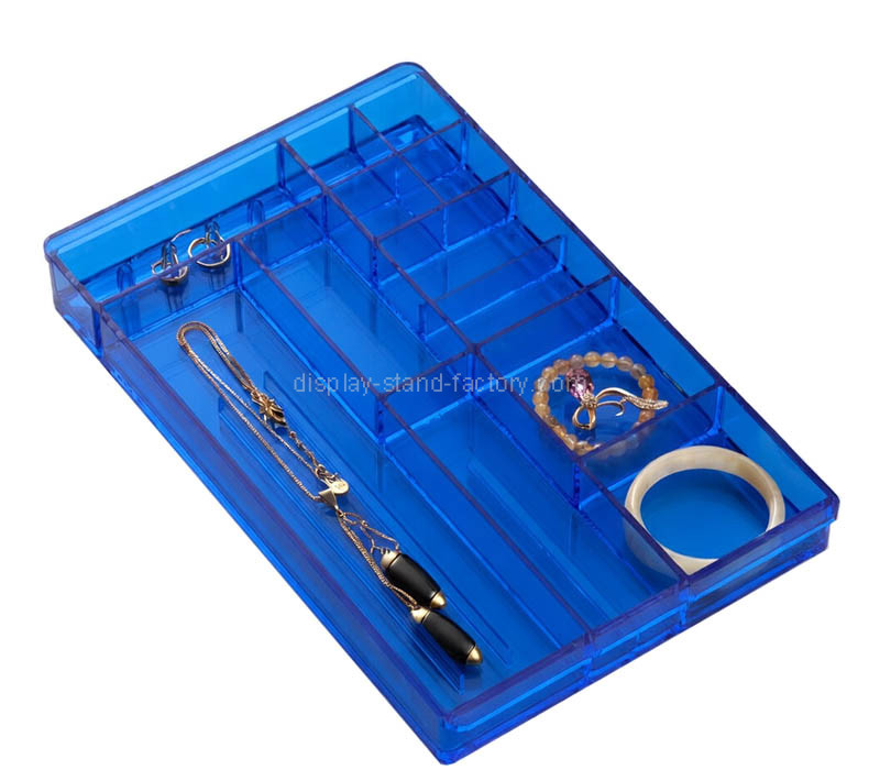 Elevate your retail collection with our Custom Translucent Blue Acrylic Jewelry Tray. Featuring sleek multi-section dividers, it’s perfect for organizing rings, necklaces, and charms. Wholesale only, with fully customizable colors and shapes to match your brand’s aesthetic. Durable, chic, and designed to showcase elegance. Bulk orders tailored to your specifications.