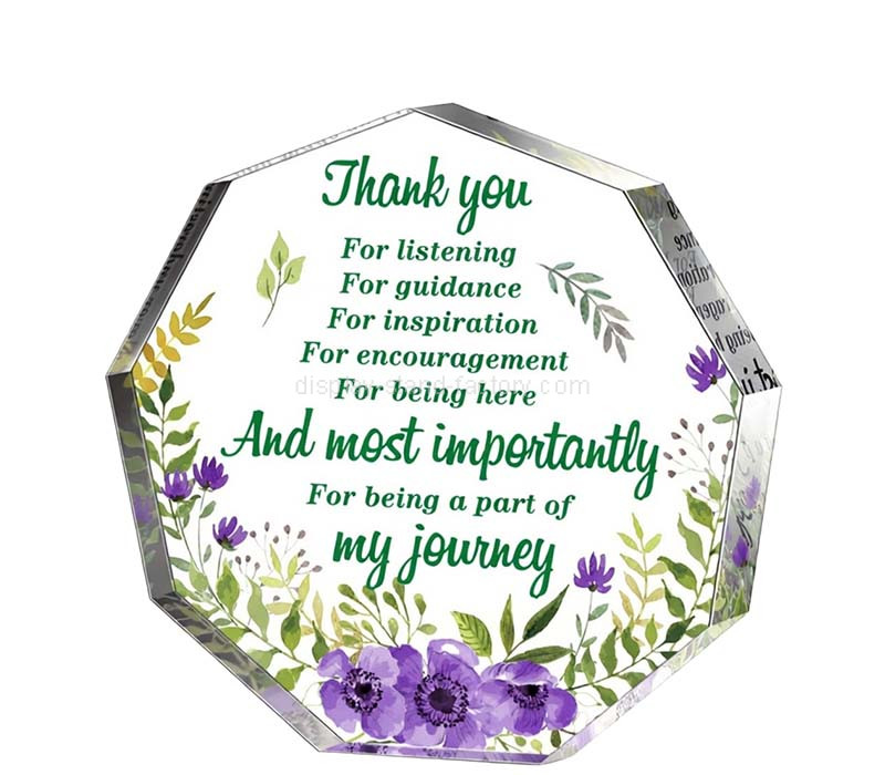 Custom acrylic nonagon thank you gift block, ideal for appreciation gifting. Color, shape & size fully customizable. Durable, sleek & personalized design. Wholesale only, bulk orders welcome for premium corporate & event giveaways.