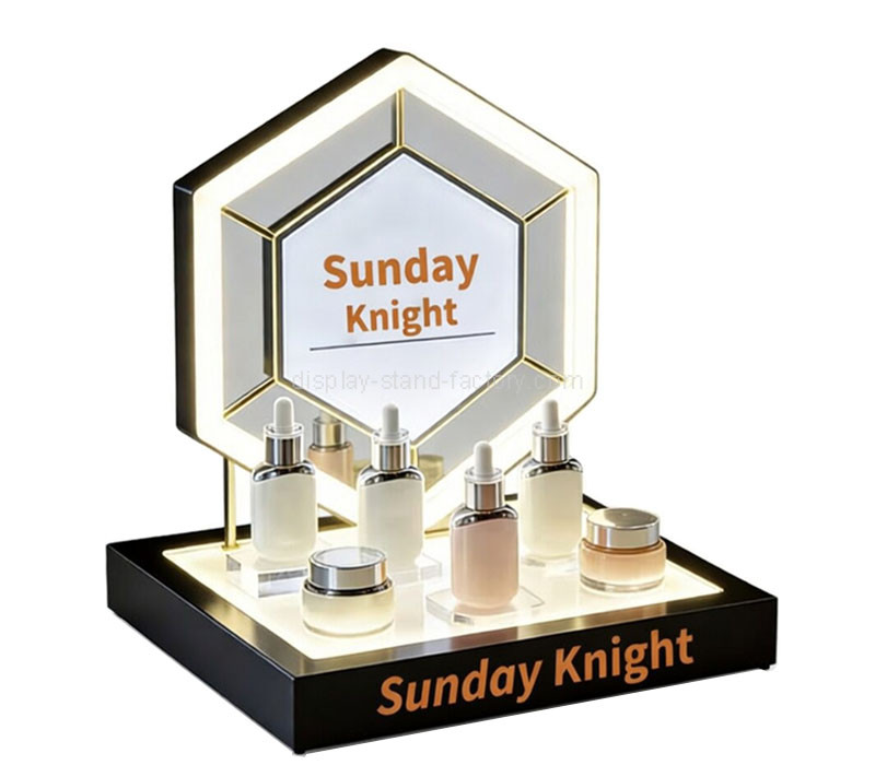 Custom acrylic illuminated display prop designed for skincare products. Features a sleek, modern design with built-in lighting to highlight your products beautifully. Fully customizable in color, size, and shape. Ideal for retail showcases. Wholesale only.